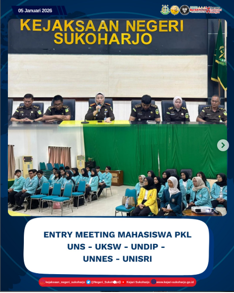 Kepala Kejaksaan Negeri Sukoharjo memimpin langsung kegiatan Entry Meeting Mahasiswa PKL dari UNS, UKSW, UNDIP, UNNES, dan UNISRI.